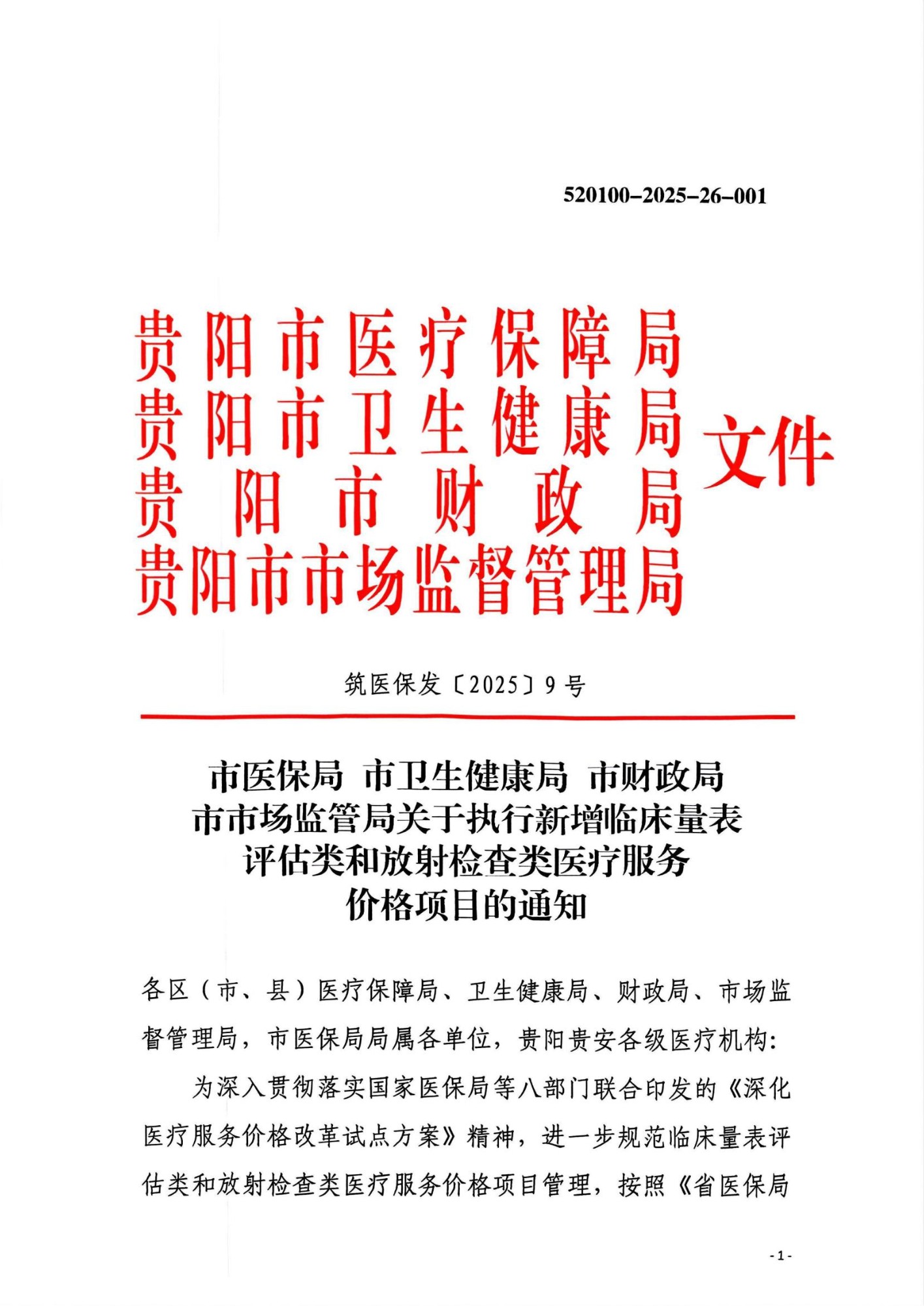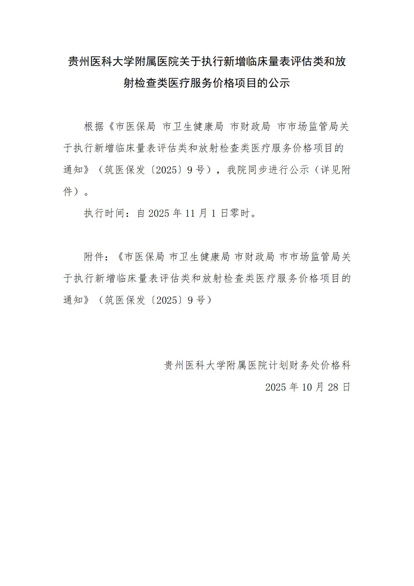 贵州医科大学附属医院关于执行新增临床量表评估类和放射检查类医疗服务价格项目的公示