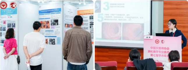 大会特别设置“消化青年女医师能力建设展示”专场,得到全国青年女医师积极响应、踊跃投稿。经专家评审,最终遴选出8项科研创新成果及10例优秀临床病例进行现场汇报交流,由资深专家逐一点评指导;其余优秀稿件以壁报形式集中展示。交流内容涵盖肿瘤微环境、肠道菌群、疑难罕见病例及复杂内镜介入技术等前沿领域,充分展现了青年女医师活跃的科研创新思维与扎实过硬的临床诊疗功底。