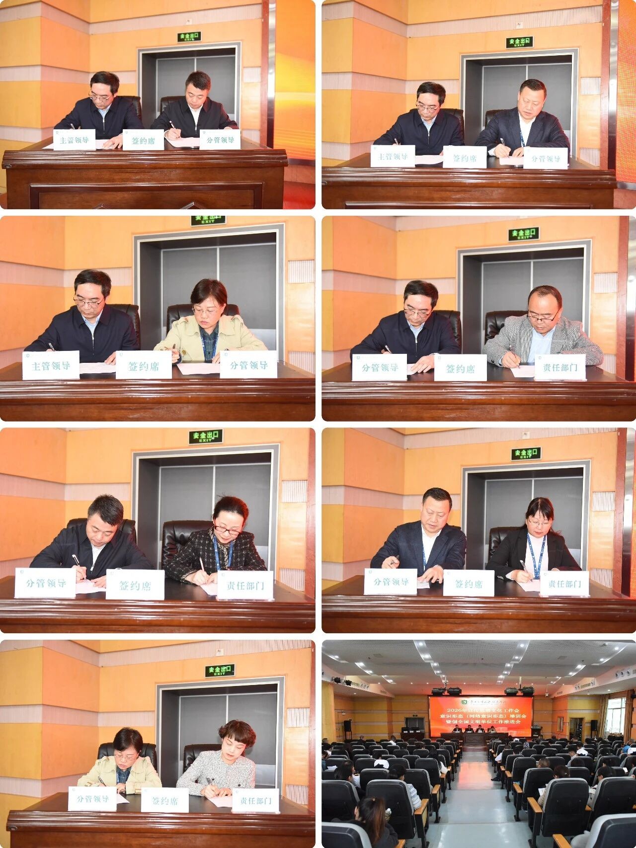 会议现场举行意识形态工作责任书签订仪式,李海洋先后与左石、副院长李伟、总会计师谌贻萍签订意识形态工作责任书,院领导班子成员分别与分管部门负责人、党支部书记代表签订责任书。