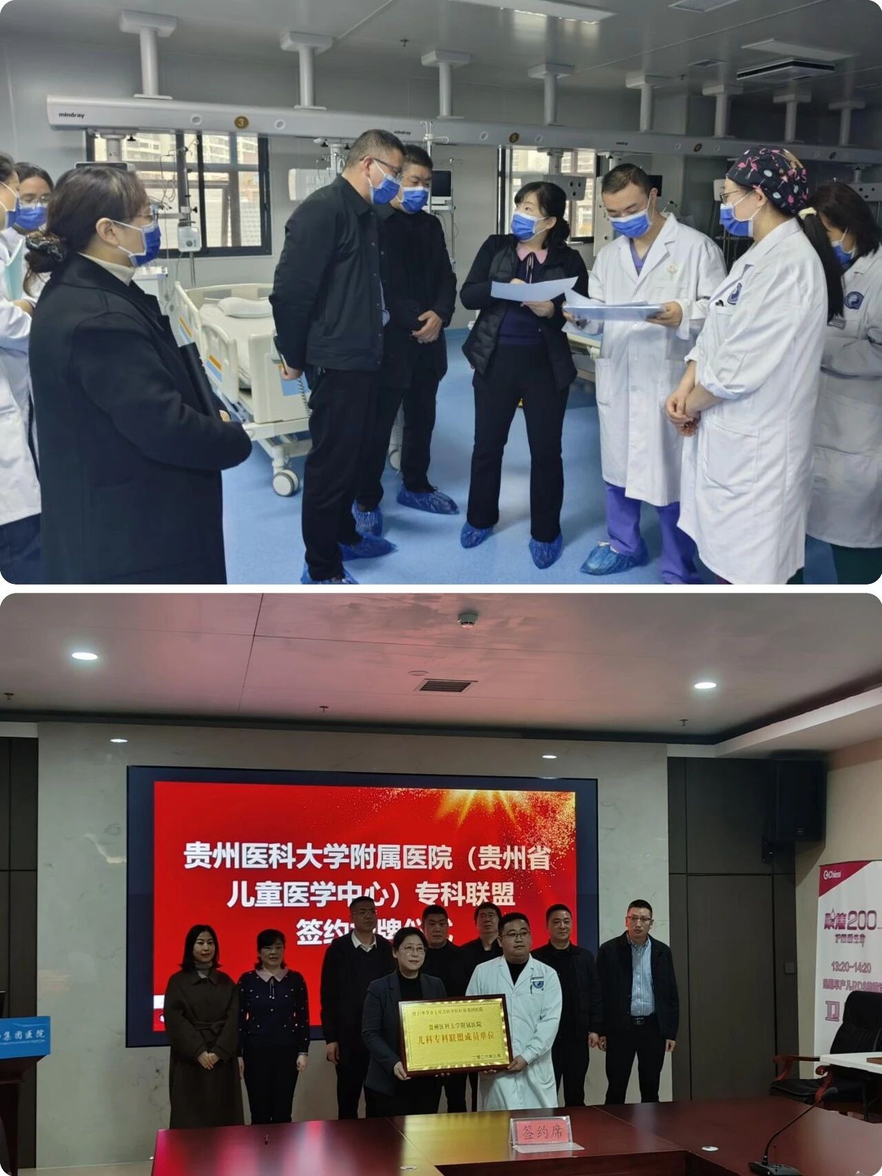 在七星关区中医妇幼集团医院,党委书记石明海介绍了医院及儿科基本情况,双方围绕人才培养、学科建设等核心内容展开深入交流研讨,现场正式签署儿科专科联盟协议。孙慧、王鉴到病房,针对PICU和新生儿科病房建设提出专业意见建议,在床旁为重症患儿诊疗提供现场指导。