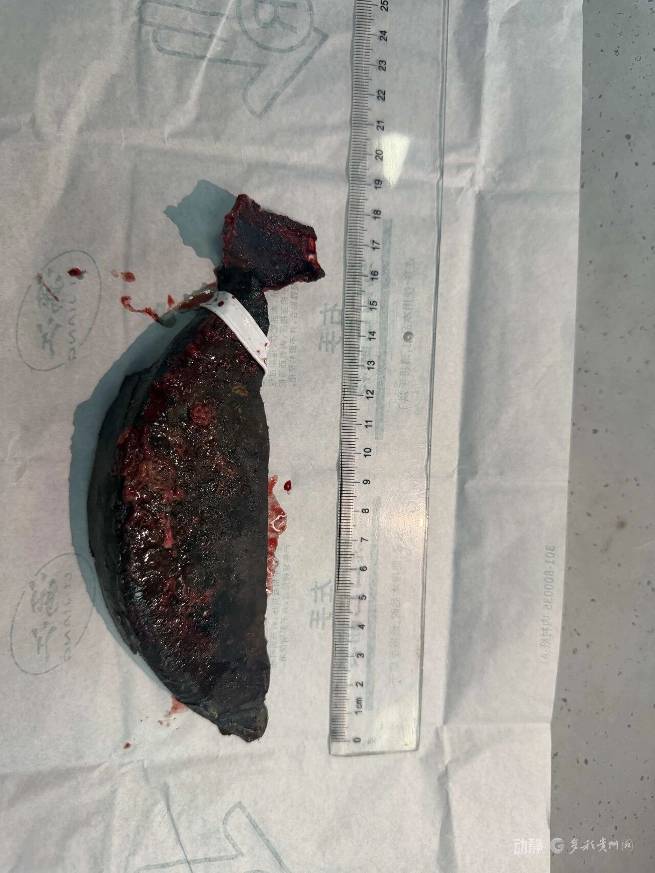 杨夏立即赶回医院。神经外科先行血管造影后,神经外科、眼科、口腔颌面外科等多学科团队迅速制定手术方案,成功取出一根长达19cm、宽近7cm、厚4cm的巨大金属异物。因右眼球毁损严重,眼科行眼球摘除及眼窝成形术;神经外科同期行颅底修补及脑脊液漏修补;口腔颌面外科及五官科接力完成清创修复。术后患者生命体征平稳,左眼及视力成功保住。