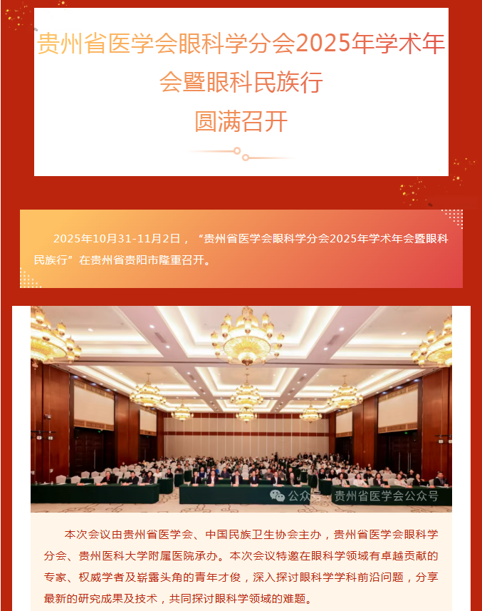 贵州省医学会眼科学分会2025年学术年会暨眼科民族行圆满召开图片 发布时间:2025-11-14 09:55 本文出处:党委宣传部新闻科 点击量: 分享 分享到 微信 微博 QQ空间 扫一扫 手机端浏览 分享 分享到 微信 微博 QQ空间