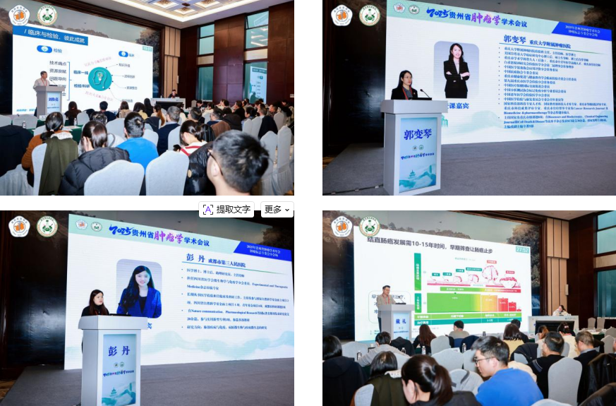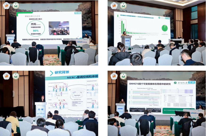 学术环节内容充实、紧扣临床与科研前沿。多位专家围绕肿瘤标志物的基础研究、技术创新与临床应用作了精彩报告,现场交流热烈,思想碰撞不断。刘焕亮教授在报告中指出,检验医学与临床诊疗的深度融合是提升肿瘤精准诊治水平的关键。他通过多个案例,阐述了如何通过标志物检测结果的精准解读,辅助临床决策,实现从“数据提供”到“诊断参与”的转变。他强调,检验科应主动融入临床路径,加强与临床科室的常态化沟通,共同构建以患者为中心的诊疗服务体系;郭变琴教授系统梳理了AFP、PIVKA-II等传统标志物及新型液态活检标志物在肝癌早诊、疗效监测、预后评估中的价值。她特别介绍了如何利用人工智能与大数据技术,对多维度标志物数据进行整合分析,实现肝癌风险的动态评估与个性化管理,为肝癌的全程精准管理提供了新思路;彭丹教授围绕全自动化学发光免疫分析仪检测原理与临床应用,深入浅出地讲解了化学发光技术的原理、优势及其在肿瘤标志物检测中的标准化应用,为基层医院开展规范、准确的标志物检测提供了实用指导;戴礼教授在报告中分享了肠癌早期筛查中DNA甲基化标志物的最新研究进展与应用实践,论证了甲基化检测在肠癌早筛中的敏感性、特异性及卫生经济学价值,为贵州地区开展肠癌人群筛查提供了重要的技术借鉴。青年学者报告环节,分别由贵州省人民医院的副主任技师葛章文、贵州医科大学附属肿瘤医院主管技师陈海星、贵州医科大学附属医院主管技师赵娟娟及遵义医科大学附属医院研究生赵丽进行题为《多指标联用时代:肿瘤标志物助力精准健康管理》、《结直肠癌基因变异分布情况分析》、《SNHG16作为胃癌肿瘤标志物的潜在价值》和《基于线粒体-内质网交互诱导内质网自噬探讨SLC25A5在三阴性乳腺癌中的作用及机制》的精彩报告分享。