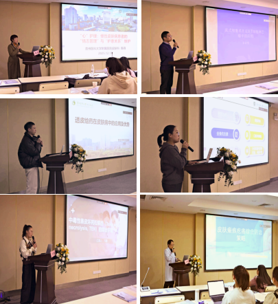当日下午,贵州医科大学附属医院皮肤科陈丹护士长《心”护理:慢性皮肤病患者的情志管理与护患关系维护》、贵州医科大学附属医院章亚明主管技师《流式细胞术在皮肤T细胞淋巴瘤中的应用》、贵州医科大学附属医院皮肤科董仙博士《寻常痤疮的管理》、贵州医科大学附属医院皮肤科冉静主管护师讲解《透皮给药在皮肤病中的优势及应用》、贵州医科大学附属医院皮肤科凡慧在读博士《中毒性表皮坏死松解症的综合护理》、贵州医科大学附属医院皮肤科刘志博士介绍《皮肤瘢痕的防治策略》、贵州医科大学附属医院皮肤科颜璐璐在读博士《敏感肌的“破”与“立”:从屏障修复到长期管理策略》分别做了讲解与交流。
