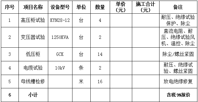 三、检修要求:包含但不限于对高低压柜等设备做预防性试验,并出具相应的检测报告。
